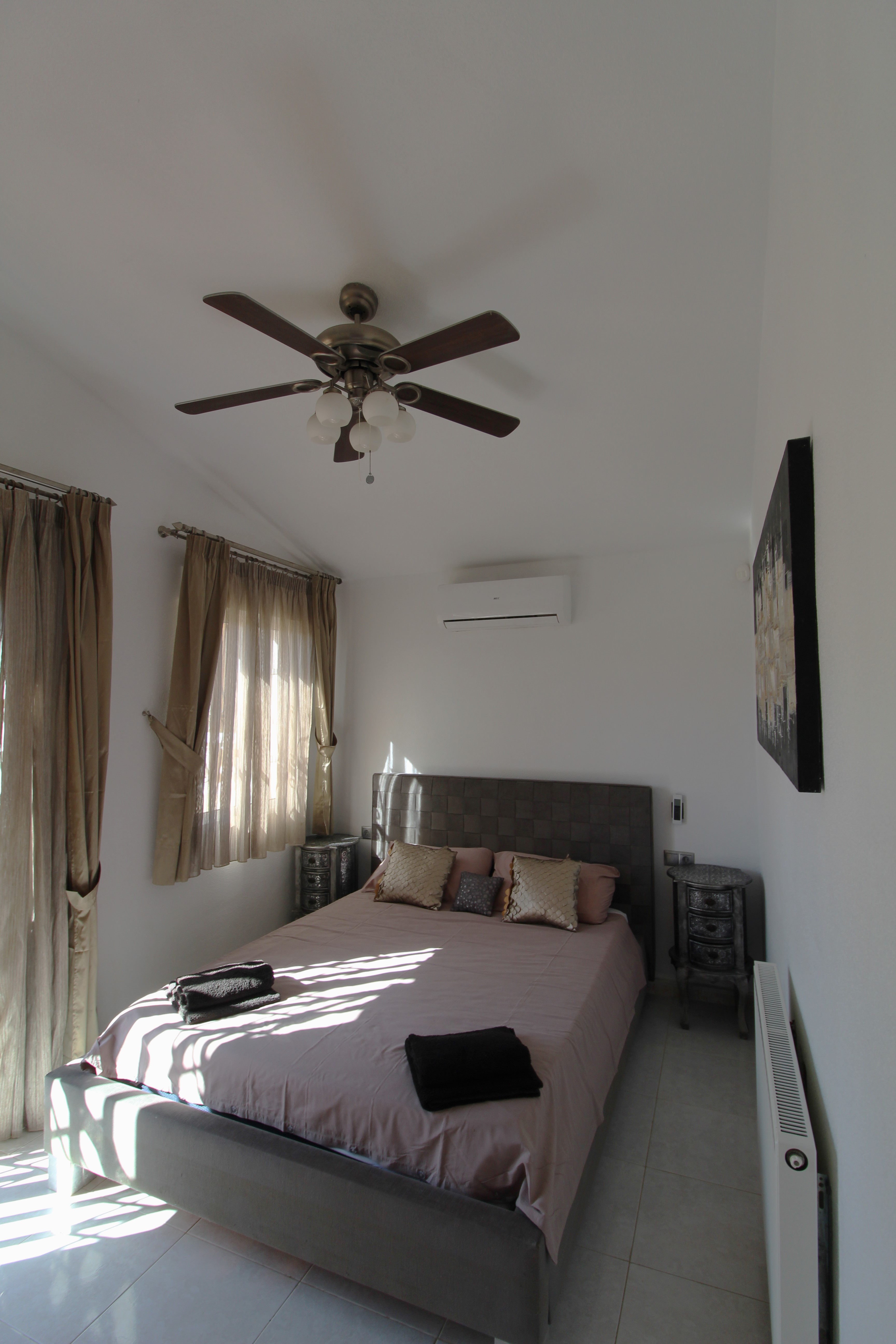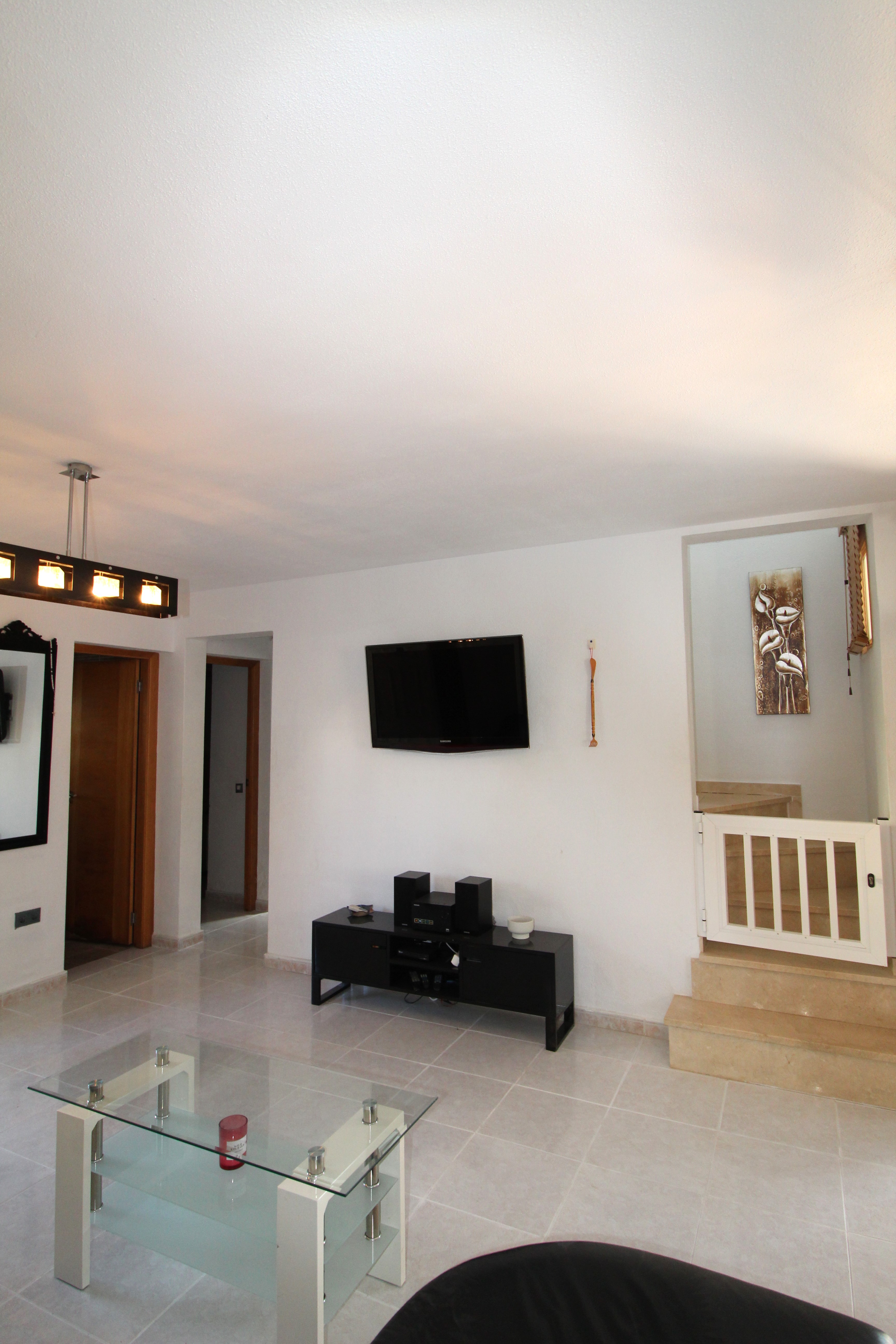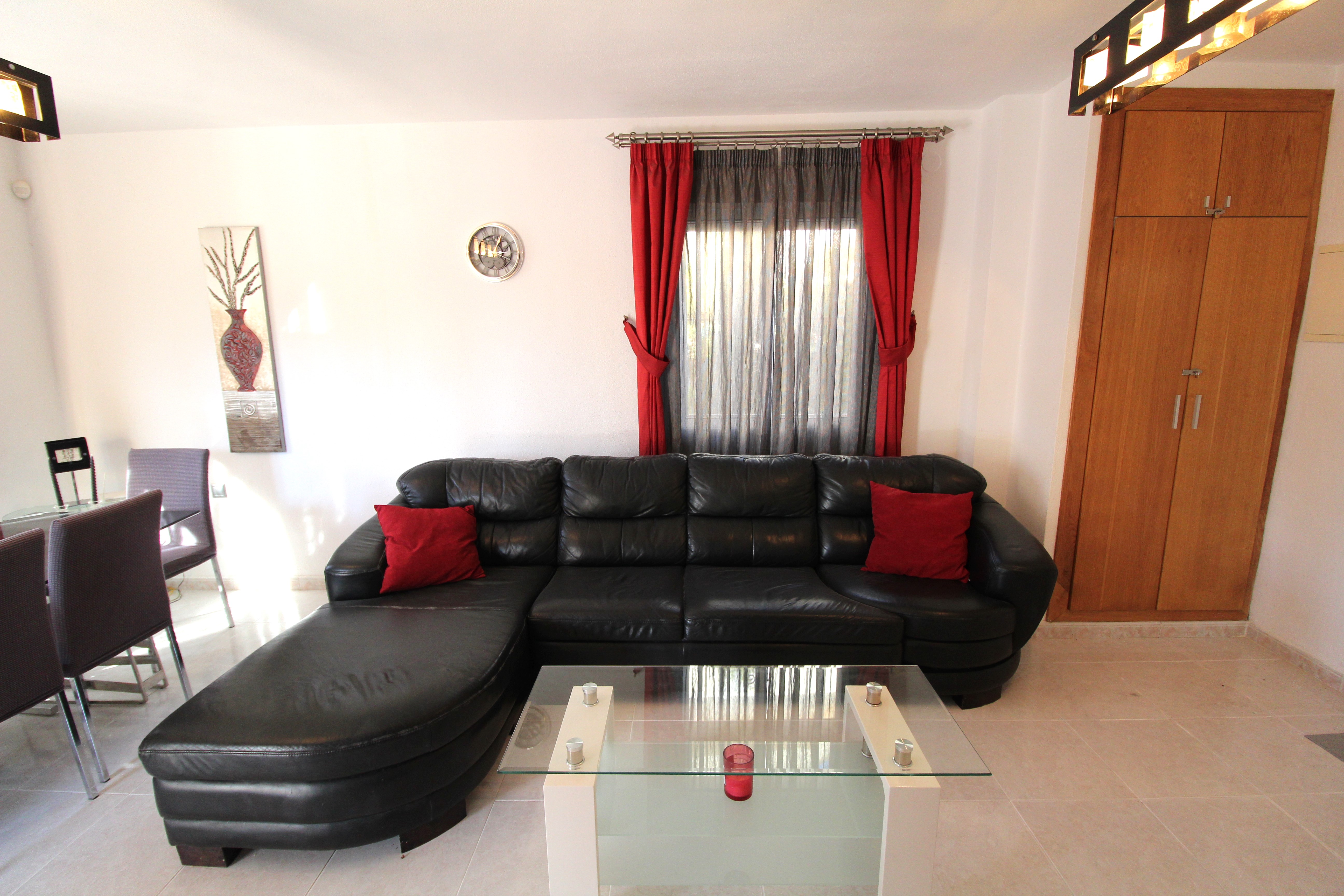 A beautiful 4 Bed 2 bath villa with a large private pool in Villamartin. This lovely furnished villa in situated a 15 minute walk from the Villamartin Plaza & Golf Course. It is an ideal family villa with a cot and 2 bunk beds provided in one of the bedrooms and safety gates throughout . There is a large outdoor area with a private pool, bar and kitchen area, there is a lovely terrace with safety gate outside overlooking the pool of the main living area and plenty of sunbeds to catch the year round sunshine. The living / dining area is stylishly furnished and leads into a very large modern kitchen, a downstairs wet room and a twin bedroom. There is a safety gate leading upstairs to the further three bedrooms and a large family bathroom. The large main bedroom is beautifully furnished and has a terrace with table and chairs. There is a twin room and a bedroom with bunk beds. There are many features of this villa including air conditioning, UK TV & WIFI and an outside pool table & table tennis table. It has everything you need for that perfect family holiday.