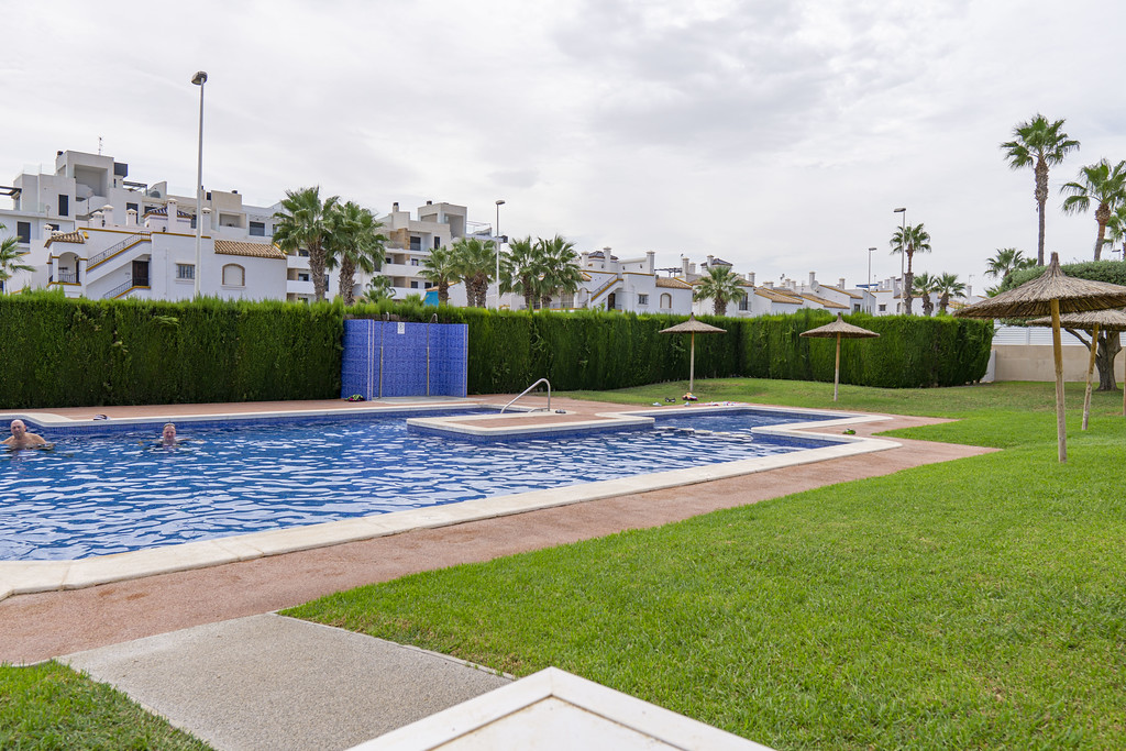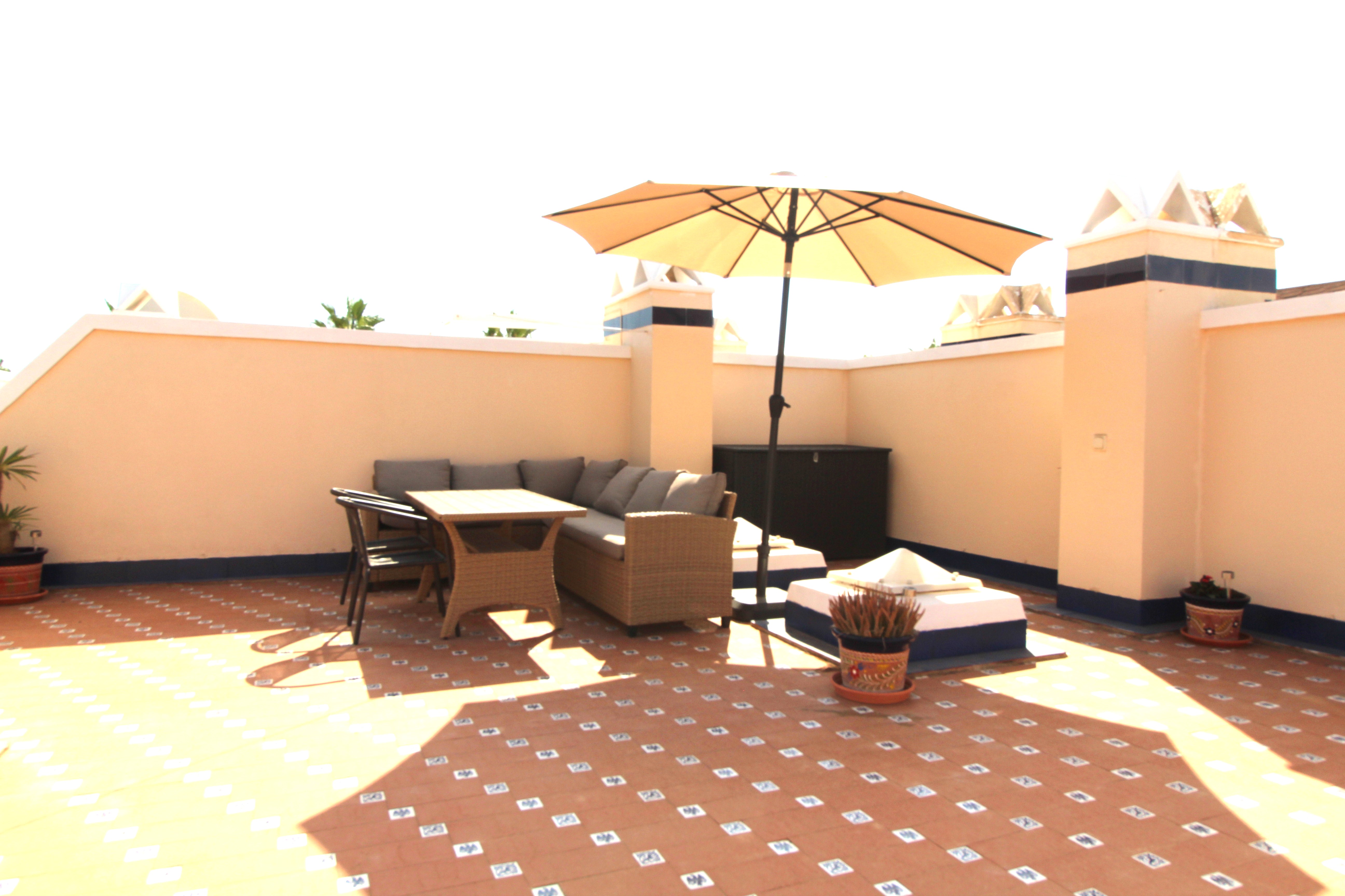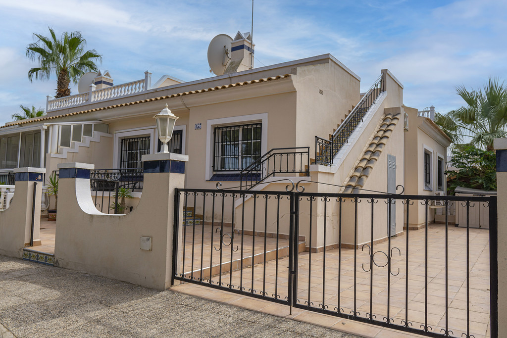 Beautiful 2 Bed Detached Townhouse l set in the desirable Oporto Development in Los Dolses. The urbanisation is well established, friendly, quiet & with the benefit of a large beautiful swimming pool. The property has a large roof top solarium ideal to soak up the spanish sunshine & a large downstairs patio area and driveway.