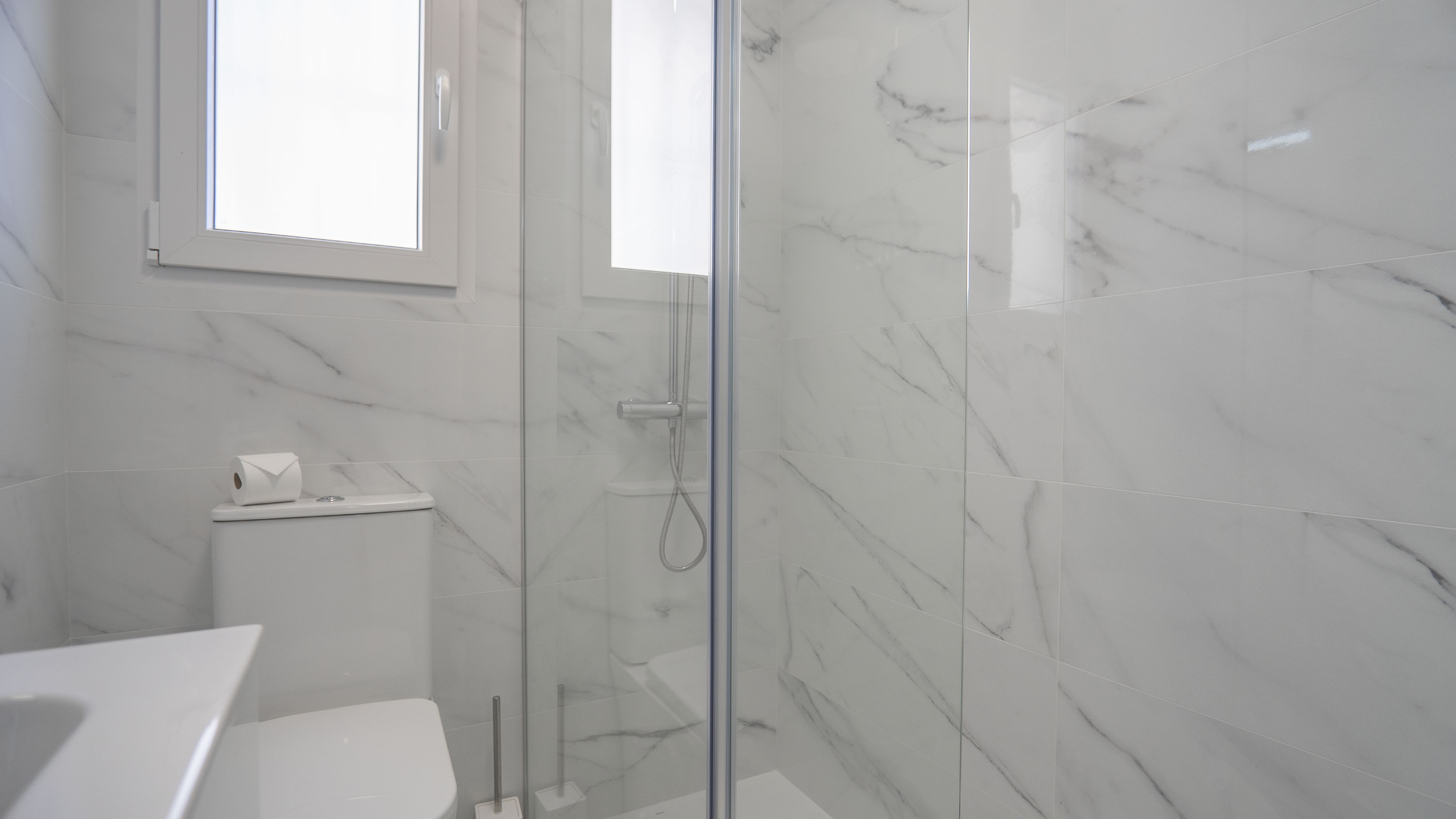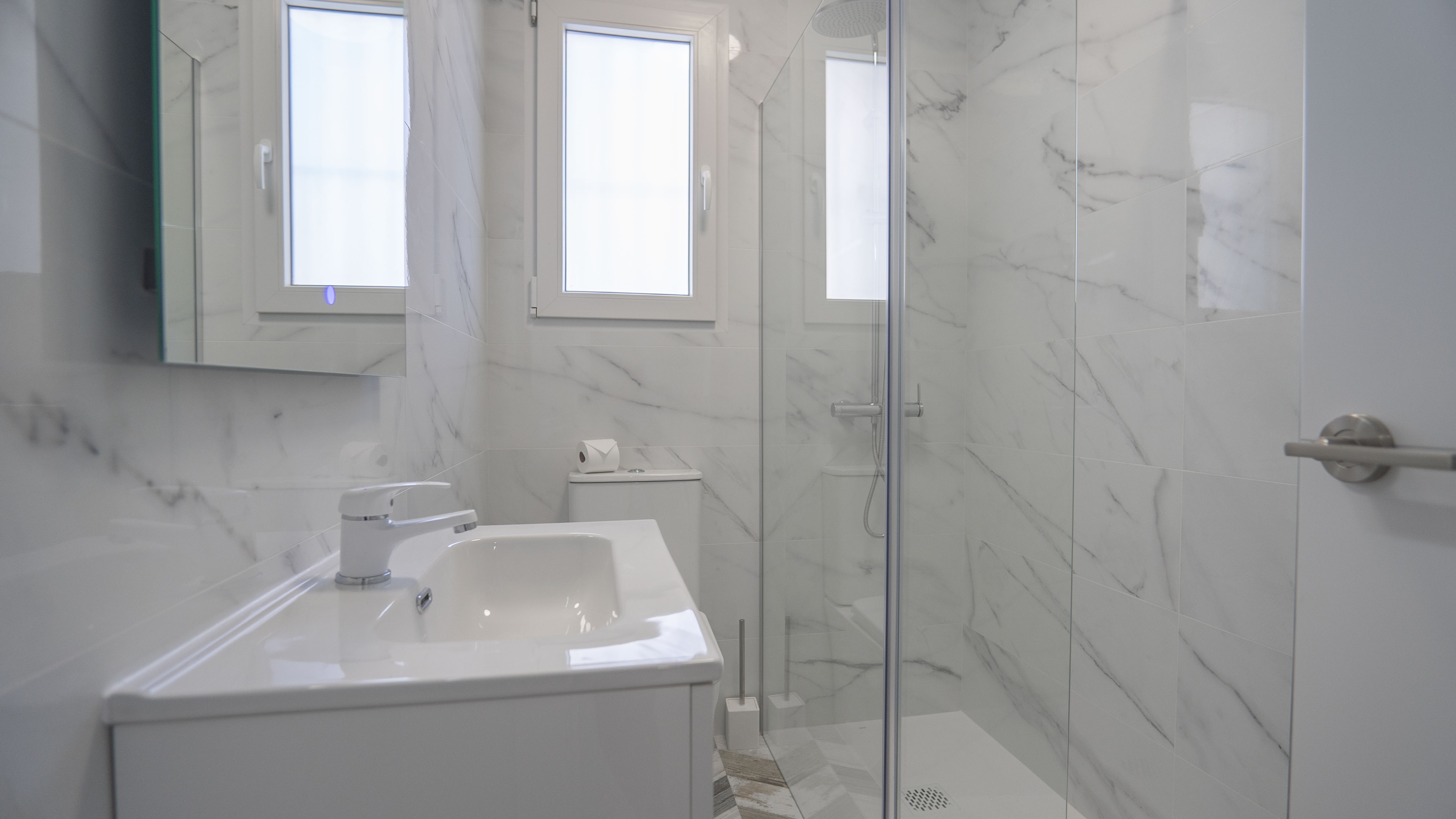 Inside, discover a contemporary, minimalist interior design exuding spaciousness and style. Four generously sized bedrooms, each adorned with wardrobes and equipped with air conditioning, await your relaxation. One bedroom features an en suite bathroom with a walk-in shower, while two additional family bathrooms also offer the indulgence of walk-in showers.