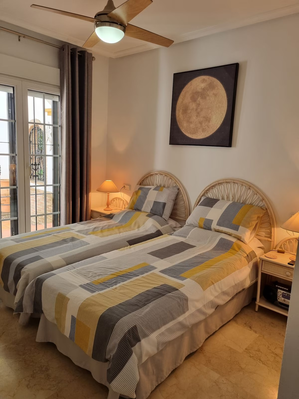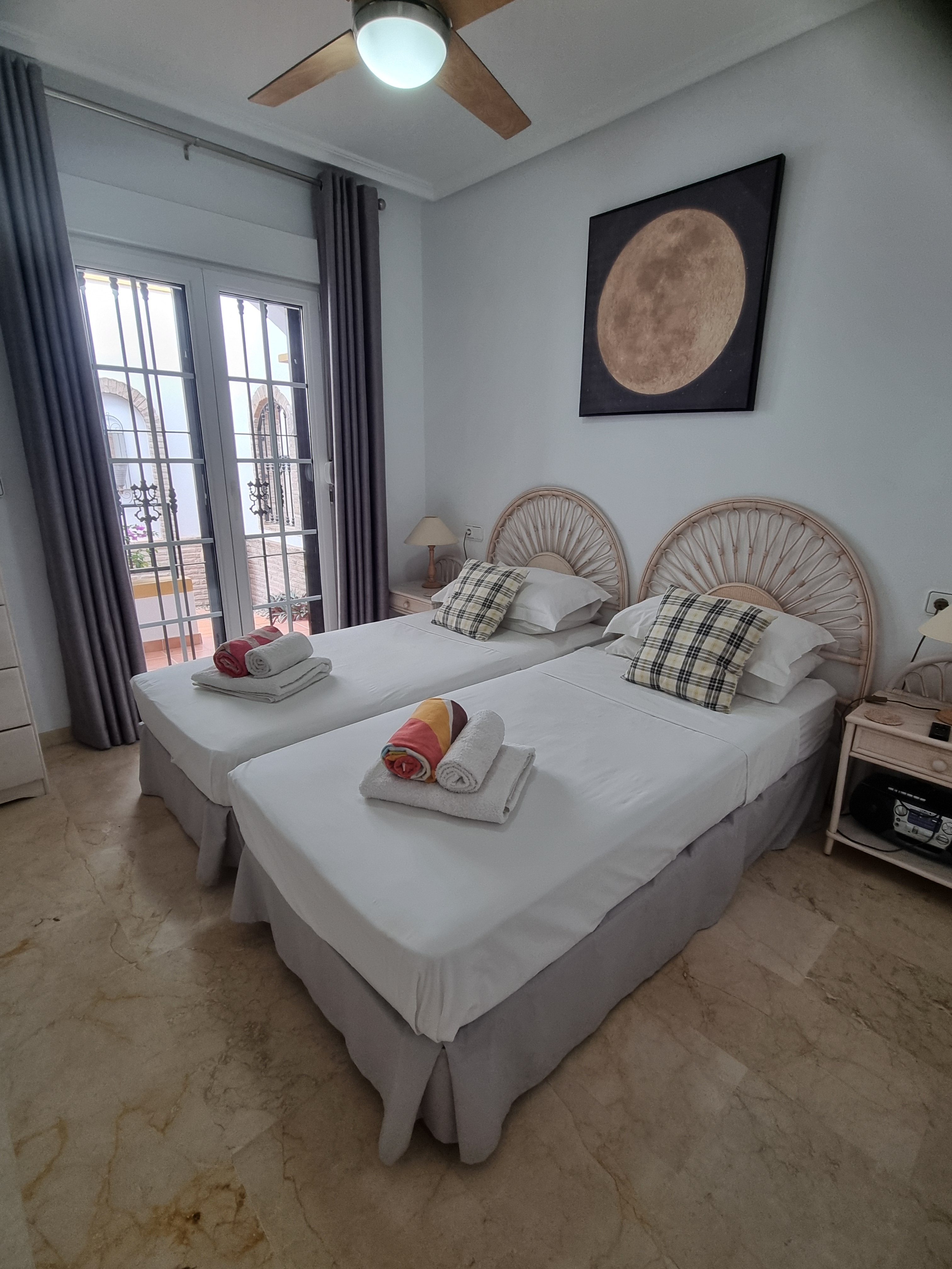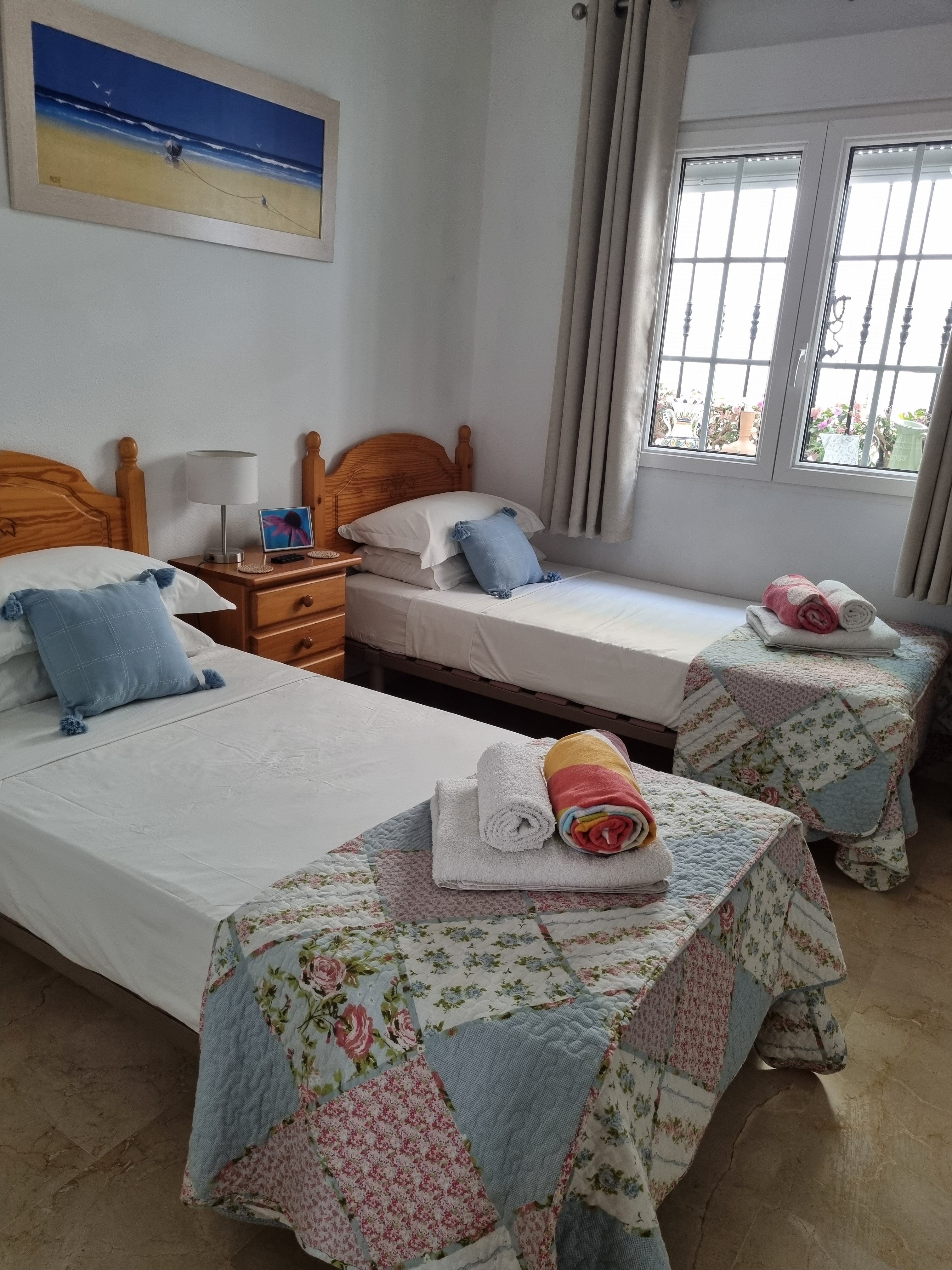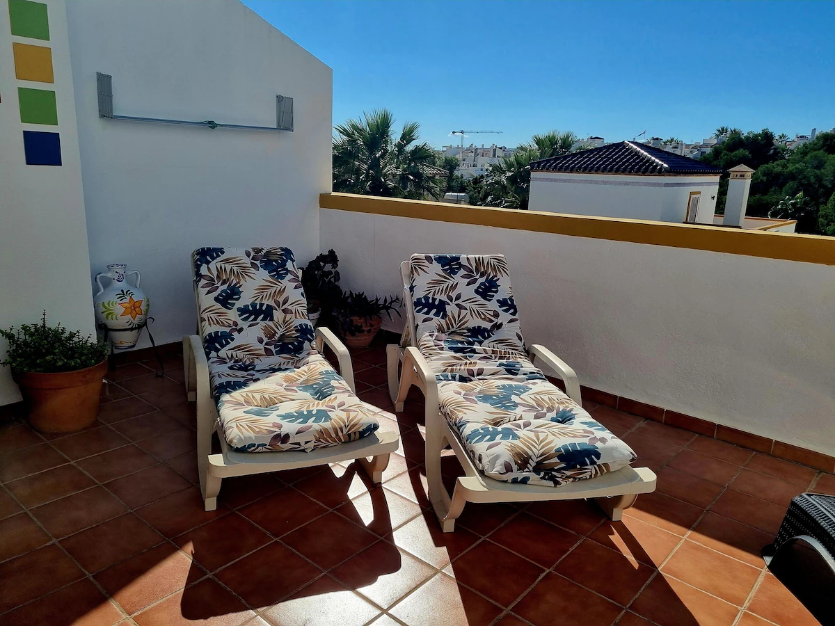 The communal pool, nestled in beautifully landscaped gardens, includes a separate area for children. Just a 2-minute walk from the villa, there’s a small park for the little ones to enjoy. And for a vibrant experience, the lively town of Torrevieja, famous for its street markets, is just a 10-minute drive away.
