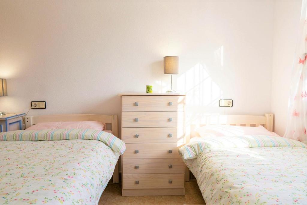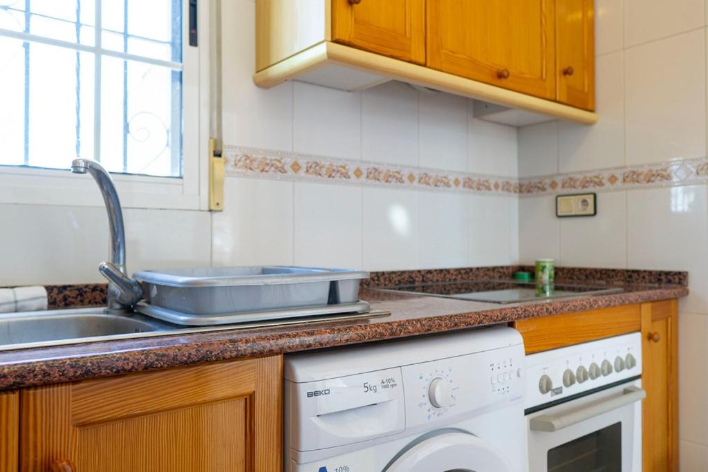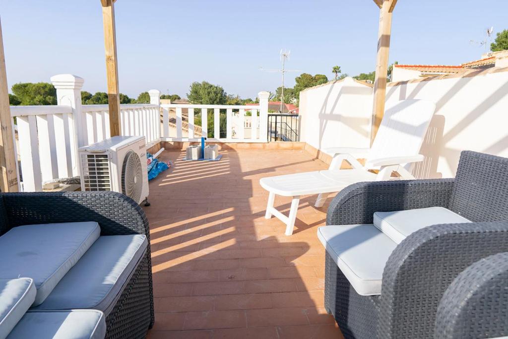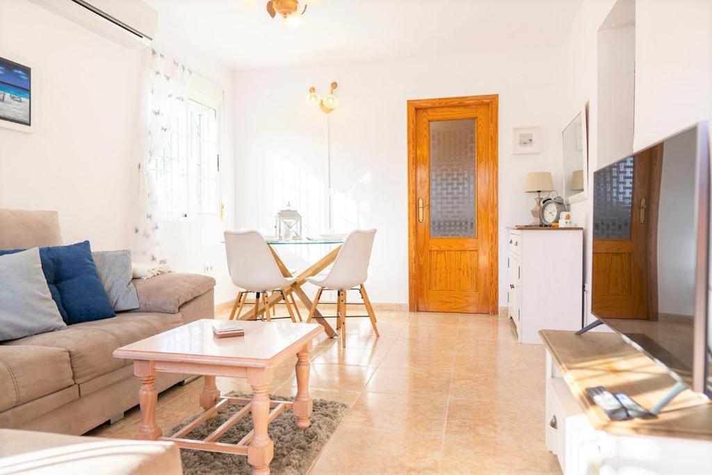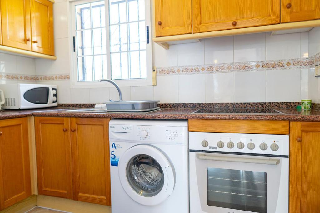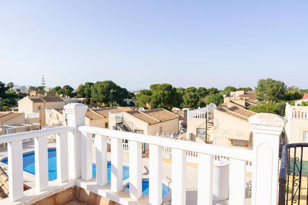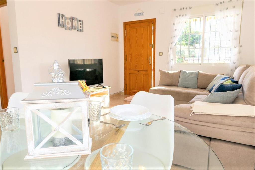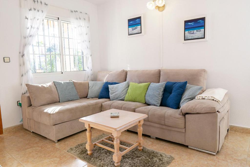 Forget your worries in this spacious and serene space. There is plenty of outside space in this detached villa with a large outside terrrace area for al fresco dining and soaking up the sunshine. There is a table and chairs overlooking the large communal pool area and a large private solrium with seating and sunbeds. Inside is bright and sunny with modern furnishings, wifi & aircon. The spacious bedrooms have fitted wardrobes and a double bed and a twin room with a sofa bed in the lounge.