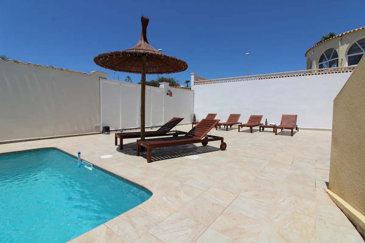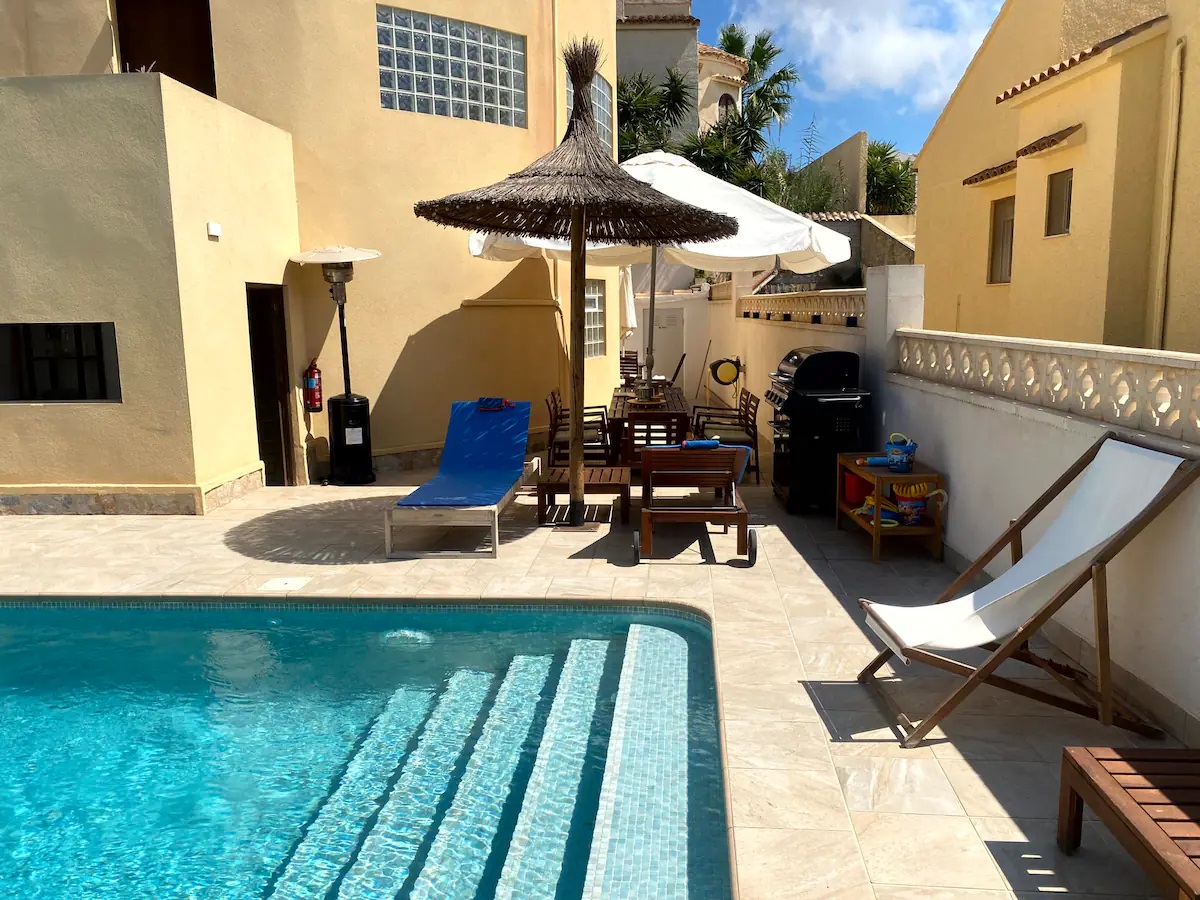 The Villa is located in a prime location, with many bars & restaurants within walking distance or a short drive. Zenia Boulevard is just 5km away, and the beach is only 6km away. Golf enthusiasts can take advantage of the Villamartin golf course and the four other golf courses within 10 minutes’ drive.