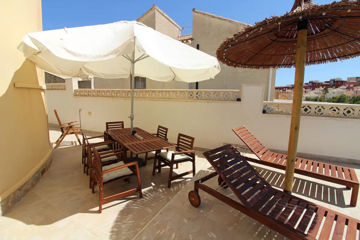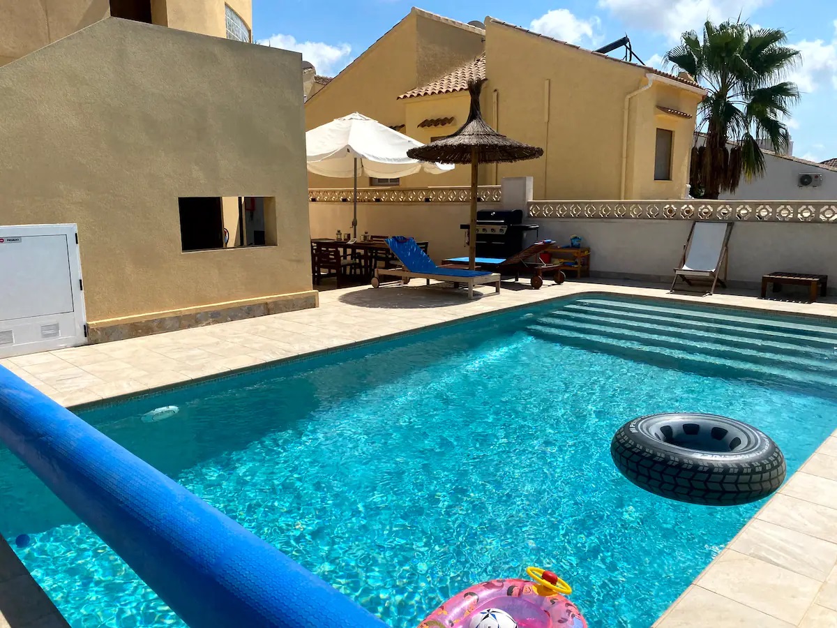 Escape to the luxurious 5-bedroom, 5-bathroom Villa in Las Filipinas for your next holiday. This stunning 200m2 villa boasts a private pool (8x4m) perfect for year-round swimming, with pool and cleaning services included for your convenience.