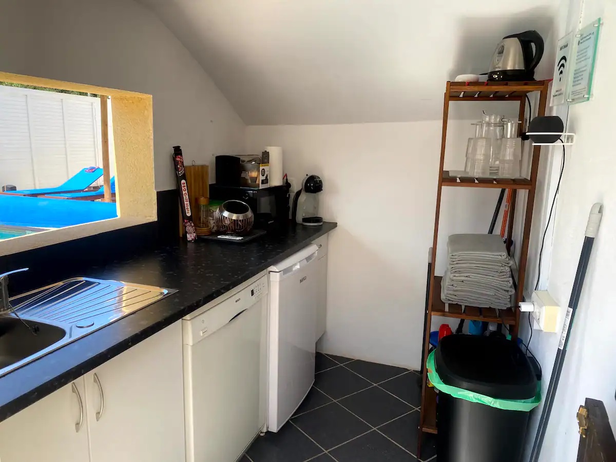 The pool bar and kitchenette area are perfect for entertaining, featuring a dishwasher, gas BBQ, loungers, reclining chairs, two tables, parasol, hammock, and a 600mb internet connection. You can also enjoy your favorite music with the HomePods or have some fun with an Xbox One and a ping pong and table football table.