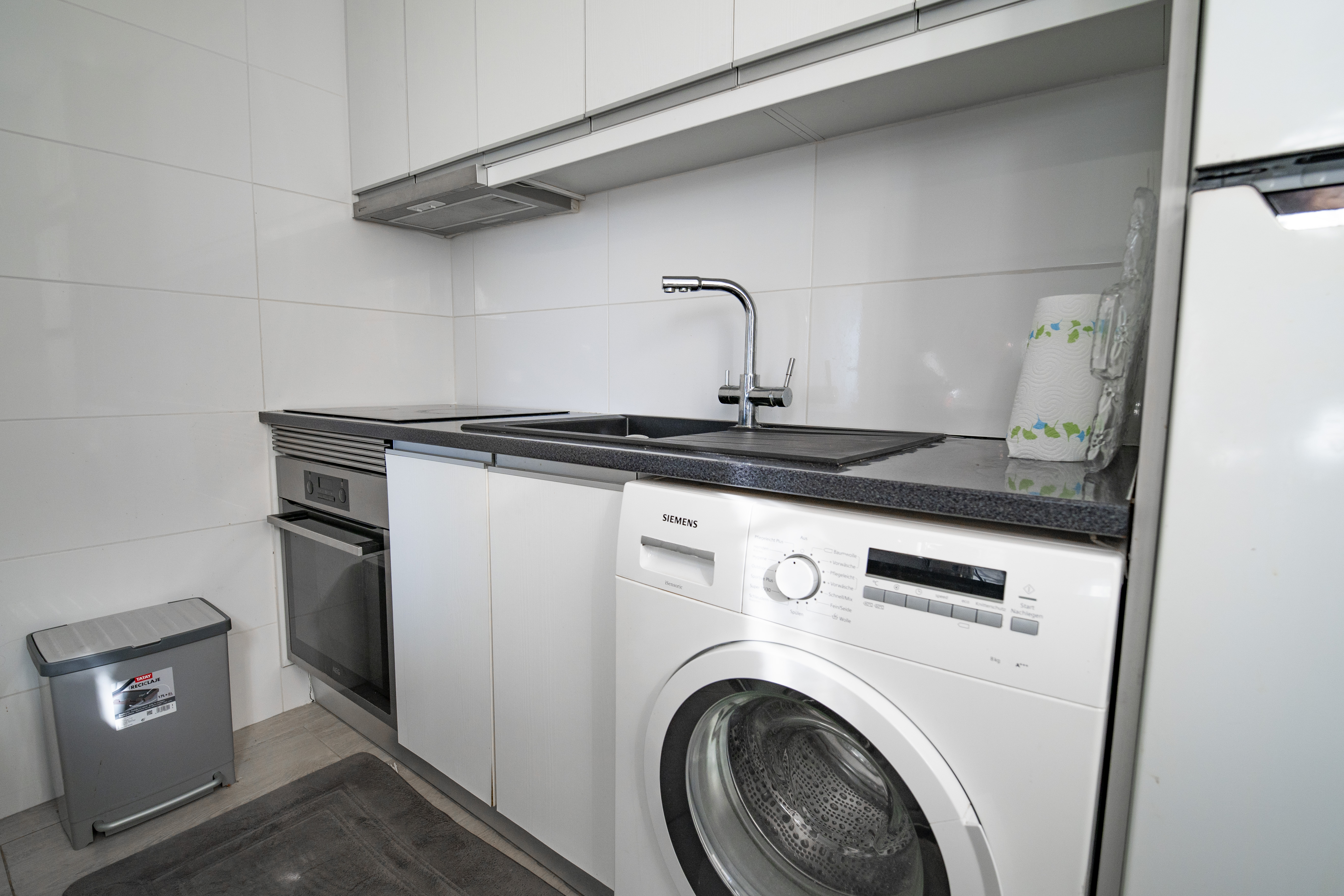Recently Refurbished Kitchen. The separate kitchen is fully equipped with white goods, including a washing machine, and has been recently renovated to a modern standard.